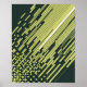 An abstract digital artwork featuring geometric lines and squares in vibrant lime green tones over a deep dark background. The composition conveys a sense of motion, speed, and futuristic energy, resembling flowing data streams or dynamic light trails. The contrast between the bright lime green and the dark base creates a visually striking and modern aesthetic.