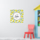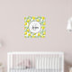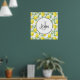 Um poster personalizado com uma inicial de monograma e um nome dentro de círculo branco com uma borda de corda preta. Projetado com limões amarelos e folhas verdes, em padrão repetitivo.
