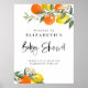 Bem-vindos convidados para o seu evento com este sinal de boas-vindas ao chá de fraldas botânico. Apresenta ilustrações de cor d'água de laranjas, limões, flores de laranja e verde. Personalize adicionando o nome, data, hora, local, endereço e outros detalhes do evento. Este sinal de boas-vindas dos citros é perfeito para chás de fraldas de jardim e de verão. Itens correspondentes estão disponíveis.