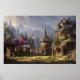 Poster Linda aldeia mágica encantada nas montanhas