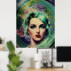 Poster Linda Lavanda e Estilo Retro Verde Mulher Espacial