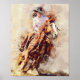 Esta é uma elegante poster de pintura de uma mulher andando de cavalo.