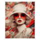 Linda mulher parisiense com um chapéu branco e óculos de sol vermelhos com abstrato moderno. Retrato elegante de moda.
