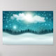 Poster Linda paisagem da floresta noturna de inverno