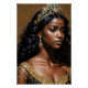 Esta trabalho de arte rica em melanina apresenta uma bela e elegante princesa de pele castanha ou rainha vestindo ouro e preto com tiara joalhada. Uma imagem clássica do estilo de pintura a óleo com uma reviravolta moderna! Esta espantosa mulher real é da diáspora africana. Ela tem cabelos longos e ondulados e epitomiza a classe.
