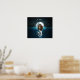Esta poster apresenta uma bela Sereia em prata com cabelo castanho escuro. Ela está nadando no oceano, em paz, sob uma lua de cheio encantadora. Alguns gráficos, por HandMek.etsy.com.