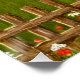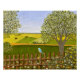 Um poster com uma bela imagem de uma cena natural: Um pássaro sentado numa cerca de uma intempérie, flores silvestres a crescer à volta da cerca, um agricultor num trator, a trabalhar a sua terra, árvores com folhas e terras agrícolas com várias cores. O plano de fundo, a imagem e o texto podem ser personalizados. Arte original por W.B.