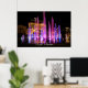 Bela poster mostra apenas algumas das paisagens e arquitetura de Kiev, Ucrânia nesta cena noturna de fontes coloridas com o Grande Hotel Kiev de Fairmont, ao fundo.