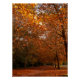 Lindas árvores de queda em um impressão fotográfico panorâmico laranja e dourado.