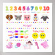 Adicione um toque especial e personalizado ao quarto ou berçário da sua menina com este adorável pôster de aprendizado. O pôster contém números de 1 a 10, cinco animais, várias cores, um rosto feliz e um triste, e ícones representando objetos. Adicione o primeiro nome para um toque personalizado.