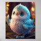 Poster Lindo Quarto de Bebê Pássaro Azul Cítrico Glitter