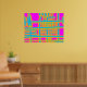 "Lines of Communication" a colorful abstract design in magenta, blue and shades of amber and orange.