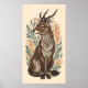 Poster linhas fluentes e antílope decorativo de padrões
