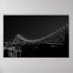 Captivando fotografia em preto e branco da ponte Lions Gate em Vancouver, Canadá. A elegante ponte suspensa passa por águas pristinas, enquadrada por uma dramática paisagem urbana. Uma arte impressionante capturando a essência desse marco icônico