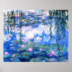 Um poster de água cor-de-rosa monet com lírios de água cor-de-rosa lindos flutuando em um lago azul calmo com almofadas de lírios. Um presente de Monet excelente para fãs do impressionismo e da arte francesa. Inimpressionismo sereno na natureza com lindas flores e paisagem de lagoas cênicas.