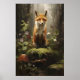 Poster Little Fox In Forest Wall Print, Botanical Dark