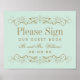 Dê as boas-vindas aos convidados para assinarem este letreiro de "Por favor, assine nosso Livro de Registro" em tom de hortelã vintage e detalhes dourados. Bordas ornamentadas em filigrana enquadram a tipografia elegante em um fundo fresco de hortelã, com espaço para o nome do casal e a data do casamento. Combina com a suíte de papelaria completa em tom de hortelã. Todo o texto é totalmente personalizável.