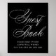 Esta sinalização romântica e atemporal "Livro de Hóspedes: Por favor, assine e deixe votos de felicidades para o novo Sr. e Sra." adiciona uma simples elegância a qualquer recepção de casamento clássico, chá de panela ou tema de festa. O modelo de roteiro luxuoso apresenta uma letra de caligrafia branca moderna caprichosa e bonita em um fundo preto. A fonte encantadora com uma cor de fundo personalizável torna fácil se adequar a qualquer tema. Para outras cores ou produtos correspondentes, visite a loja JustFharryn Zazzle, ou entre em contato com o designer, c/o Fharryn@yahoo.com. Todos os direitos reservados. #zazzlemade