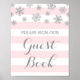 Por favor, assine nosso pôster de assinatura do livro de visitas para chá de bebê, chá de noiva ou casamento com flocos de neve prateados e rosa claro, perfeito para um chá de bebê de inverno ou Natal.