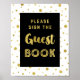 Por favor, assine nosso pôster do livro de visitas para chá de bebê, chá de noiva ou casamento em preto e branco com padrão de confetes dourados e texto em estilo letra manuscrita. Perfeito para um chá de bebê, casamento, aniversário ou chá de noiva.