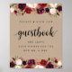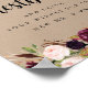 Sinal de Casamento Floral Burgundy Rustic Kraft Livro de Visitas dos Convidados Cartaz. Você pode personalizar todo o texto normal e alterar as cores do texto.