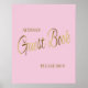Poster Livro de visitas de chá de bebê rosa elegante dour