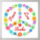 Compartilhe a diversão dos livros com este sinal de paz feito de flores coloridas e as palavras - Livros de Amor pela Paz.