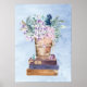 Poster Livros Roxos Azuis e Flowers Wall Art