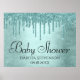 Tema de chá de fraldas, com letras luxuosas à mão, num elegante verde-menta, turquesa e garoa azul-brilhante de tinta azul de tiffany num fundo de degelo. A partir da coleção "Iching", esta textura feminina apresenta um lodo metálico falso com uma cintura brilhante iridescente que é perfeita para qualquer evento ou para o dia a dia. Para outras cores ou produtos correspondentes, entre em contato com o designer.