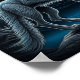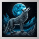 Arte de fantasia azul e negra representando um lobo solitário parado em uma montanha em frente a uma lua de cheio. Ai gerou arte.