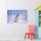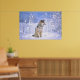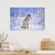Poster Lobo-Madeira sentado na neve, Canis lupus,