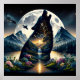 Poster Lobo Místico Howling na Lua Surreal Personalizado