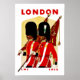 Viagens vintage de poster de Londres mostrando Guardas Reais Tropando as Cores.
