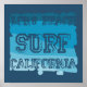 Tipografia do surf da Califórnia em ondas azuis. | © e ® Bigstock® - Todos os direitos reservados.