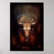 Crânio de Vaca Russo Longhorn com design intrincado e fundo ocidental grunge.