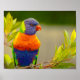 Um belo papagaio arco-íris de Lorikeet fica sentado no galho de uma árvore, apenas parecendo bonito.