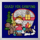 Meninas que adoram acampar adorarão este design de exterior fofo com uma garota loira de cabelos em férias de acampamento, um urso, coruja, campista, árvores e fogo no acampamento!