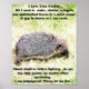 Adoro Hedgehogs, Seja Um Jardineiro Selvagem! Esta poster apresenta uma foto do nosso ouriço selvagem com texto sobre como cuidar deles na natureza. O nosso jardim tornou-se recentemente o lar de uma destas criaturas deslumbrantes e estamos tão felizes! Estão a tornar-se muito raros e precisam da nossa ajuda agora! O belo, inquisitivo e bonito ouriço está em rápido declínio. Cada um de nós pode ajudar a parar a sua extinção fazendo um pouco para ajudar. Faça uma mancha no jardim "selvagem", deixe a grama crescer um pouco mais, faça uma pequena ou grande pilha de madeira, reúna folhas e as empilhe ou deixe as folhas onde caem nas bordas. Fornecer um prato de água limpa. Faça buracos acessíveis em cercas para que os Hedgehogs possam vaguear. Procure por porcos antes de iluminá-los e verificar seu jardim antes de fazer qualquer strimming mortal. Você pode ser recompensado com um porco selvagem ou dois!