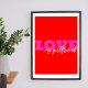 Celebre o amor com o poster deste vibrante Namorados com o texto ousado cor-de-rosa "AMOR" acentuado com vermelho neon. Adicione sua própria mensagem para torná-la realmente pessoal. Perfeito como presente romântico de Dia do Namorados, surpresa de aniversário, ou arte moderna de muro para o seu quarto ou espaço vivo.