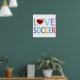 LOVE SOCCER in colorful letters with a small soccer the heart. Great gift for all who love soccer, like soccer coaches and soccer moms
