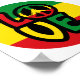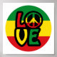 LOVE, typographic design with peace symbol and reggae style, with reggae rastafari flag colors.