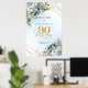 Poster Lovely dusty blue watercolor florals 90th birthday