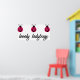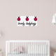 Three sweet ladybug illustrations decorate this design. Text in script reads, Lovely Ladybugs.
