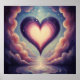 This ethereal poster features a large, glowing heart shape hovers amidst swirling clouds, casting a soft glow over a reflective surface below. The sky is filled with gentle pastel colors, creating a dreamy and ethereal atmosphere.