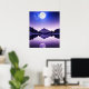 Linda paisagem de montanhas, floresta e lago à noite sob a Lua. Estilo enriquecedor para qualquer ambiente, de sala, quarto a escritório.