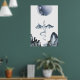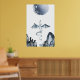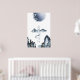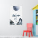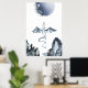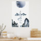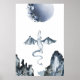 Lua cheia e dragão em tons de azul empoeirado em Poster branco de fundo -