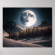 Linda lua de cheio sobre a montanha de neve de árvores.