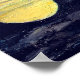 Imagem poster impressão de uma cena noturna do céu com lua de cheio cercada por nuvens. Estilo impressionista desenho colorido da lua com nuvens.