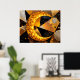 Poster Lua Crescente ouro com Estrelas Geométricas Cósmic
