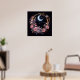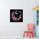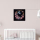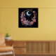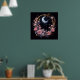 "Lua Mística e Flores" é um poster cativante que combina beleza celestial com elegância natural. Uma lua crescente brilhando e um céu estrelado são cercados por uma bela estrutura de ouro. O primeiro plano é adornado com um arranjo exuberante de flores e folhas cor-de-rosa e roxas, criando um sonho e uma estética mágica perfeita para qualquer espaço.